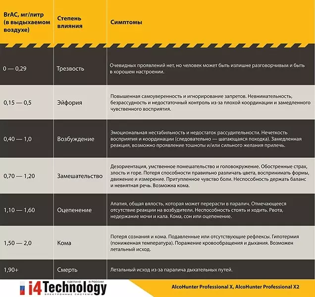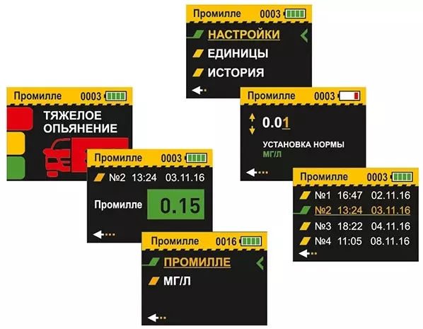 Алкометр способен отображать результаты в 2-х самых популярных единицах измерения: