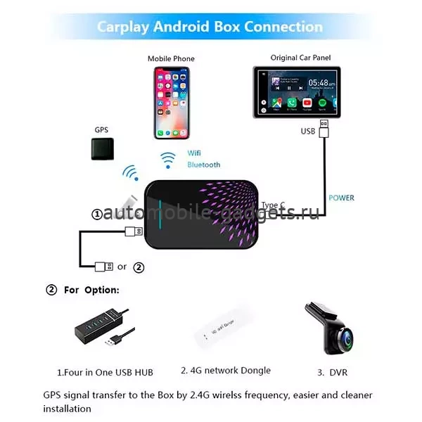 USB разъемы | USB2.0 OTG HOST разъем сзади. Длинные USB провода в комплекте (хватает до бардачка). Поддержка  USB жестких дисков до 1000ГБ(некоторые HDD требуют доп. питания). |