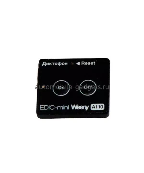 - Edic-mini Weeny A110 &ndash представитель нового семейства профессиональных  диктофонов Edic-mini Weeny с внутренней памятью, простым и понятным управлением с помощью 2 кнопок. Диктофоны этого семейства отличаются самым низким потреблением, что позволило добиться еще меньших габаритов при увеличении автономности работы. Новый цифровой микрофон и 24-битный кодек обеспечивают отличное качество записи и акустическую чувствительность до 12 м