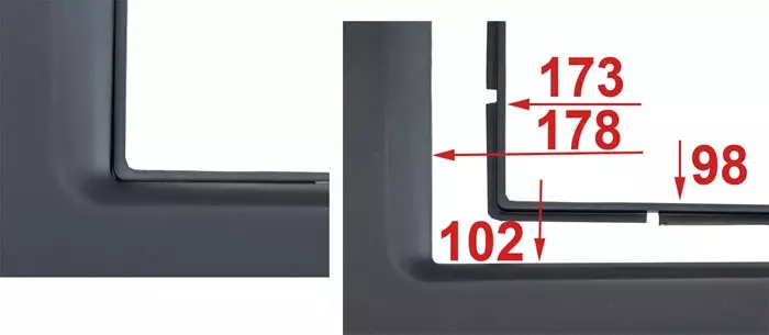 - Габариты лицевой панели магнитолы (часть магнитолы, которая вставляется в рамку)