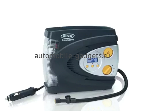 - Цифровой автоматический компрессор 12В Ring Automotive RAC630 служит для накачивания колес за максимально короткое время. Выставляем необходимое давление, а остальное произойдет автоматически
