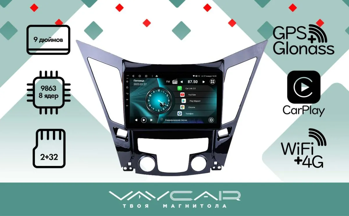 —Магнитола Vaycar 09V2 для HYUNDAI Sonata 2011-2017 (Андроид, 2+32Гб)