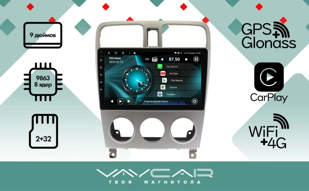 —Магнитола Vaycar 09V2 для SUBARU Forester 2002-2008 (Андроид, 2+32Гб)