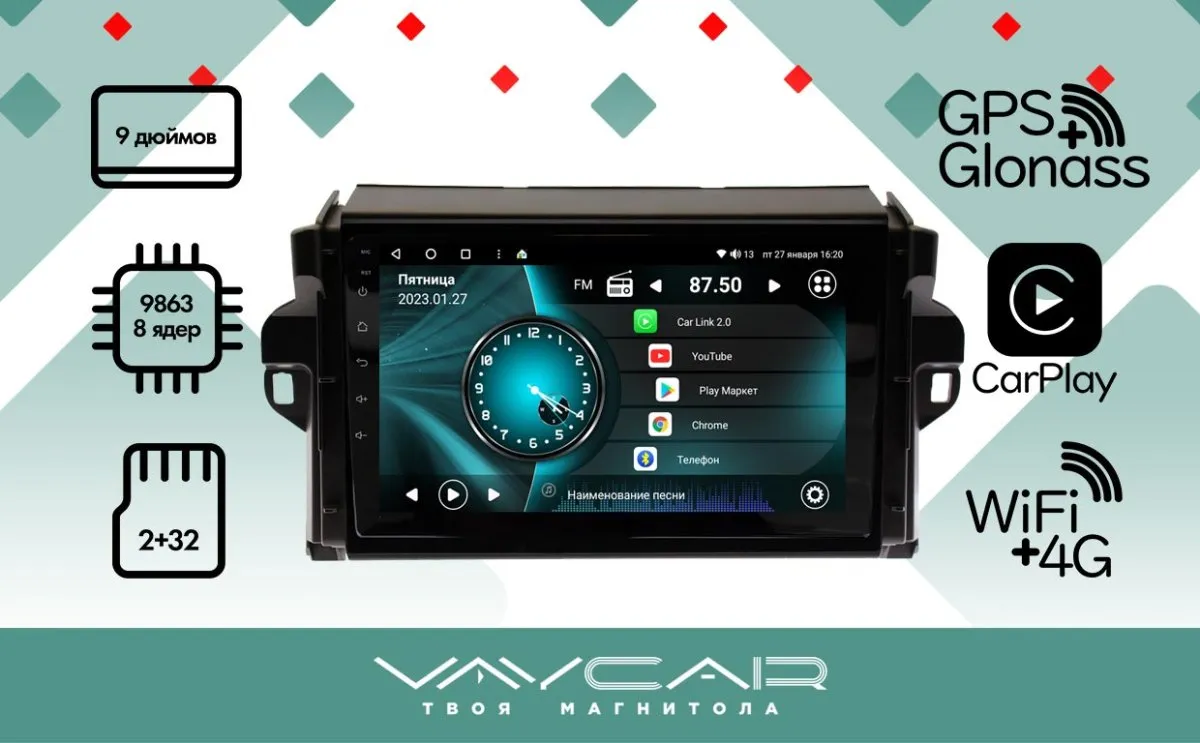 —Магнитола Vaycar 09V2 для TOYOTA Fortuner 2015-2022 (Андроид, 2+32Гб)