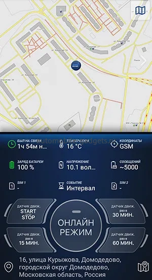 10. При необходимости срочно определить координаты животного активируйте в приложении датчик движения - онлайн режим.