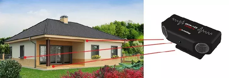 - Имеет 2 УЗ излучателя, имеющих угол охвата до 180° при распространении сигнала, что позволяет устройству эффективно защищать территорию площадью до 200 м² .