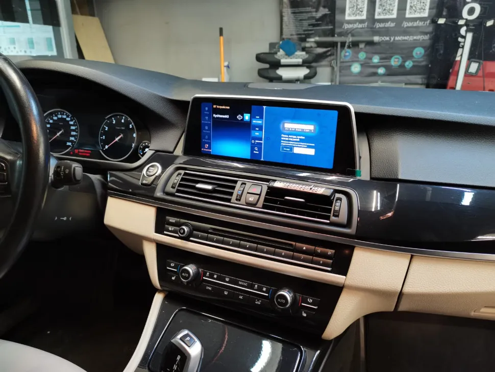 Замена заводского монитора BMW 5 серия кузов F10 / F11 2013-2016 NBT на 10.25 дюймовый емкостный сенсорный экран высокого разрешения (1920х720) с предустановленной ОС Android 13. Монитор устанавливается в штатное место автомобиля взамен оригинального монитора и органично вписывается в интерьер салона, при этом сохраняются все штатные функции: FM радио, работа кнопок на руле, штатная камера заднего вида, парктроник и т.д…