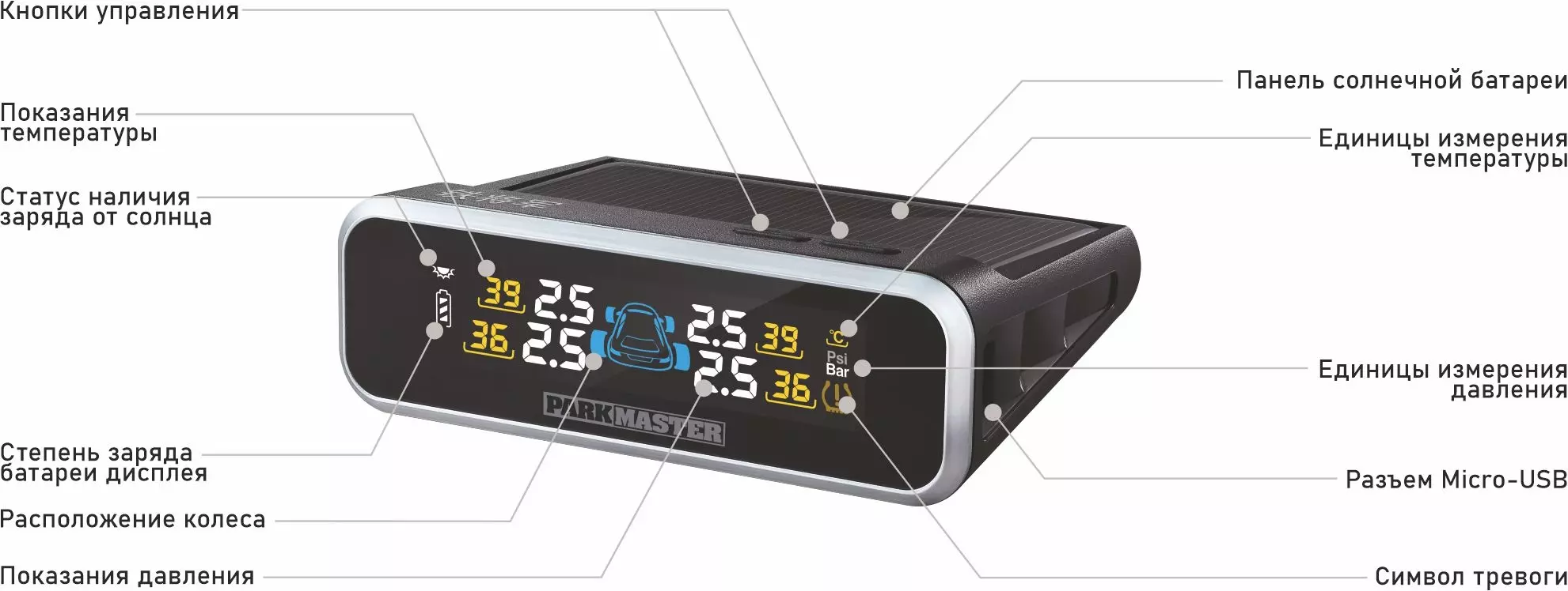 Так как устройство не зависит от питания автомобиля, его можно расположить в любом месте торпедо автомобиля. Несмотря на то, что система комплектуется внутренними датчиками давления, цена более чем приятная