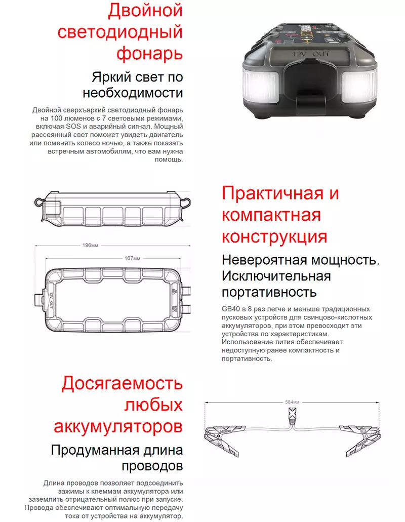 - Компактное и мощное литиевое пусковое устройство с пусковым током 1000А (7000Дж3c) &mdash до 20 запусков на одном заряде