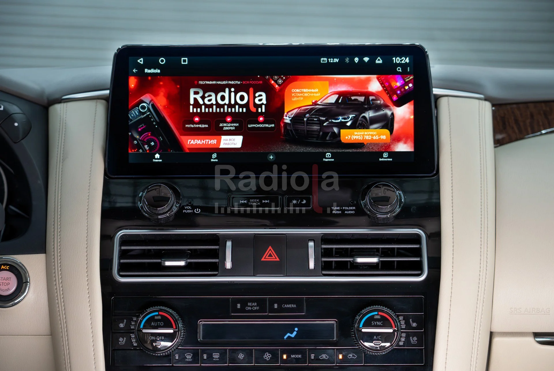 Замена заводского монитора Infiniti QX80 и Nissan Patrol 2010-2021 на 12,3-дюймовый емкостный сенсорный экран высокого разрешения (1920х720) с предустановленной ОС Android 13. Монитор устанавливается в штатное место автомобиля взамен оригинального монитора и органично вписывается в интерьер салона, при этом сохраняются все штатные функции: FM радио, работа кнопок на руле, штатная камера заднего вида, парктроник и т.д…