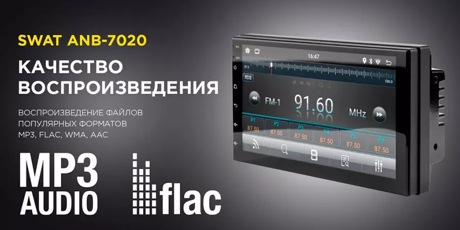 - Аудиоформаты MP3, FLAC, WMA, AAC