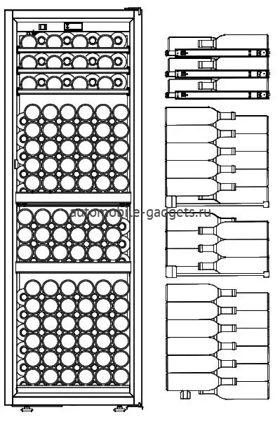 - Вместимость:  до 192 бутылок (Бордо)