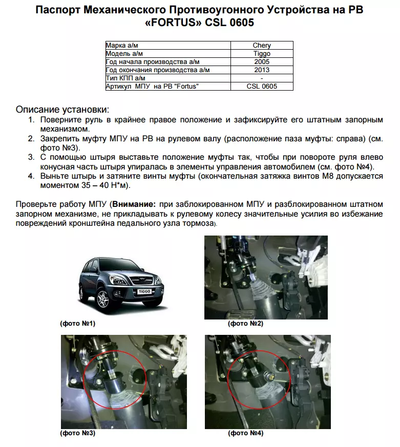 Блокираторы рулевого вала для Chery