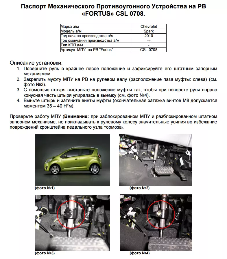 Блокираторы рулевого вала для Chevrolet Spark
