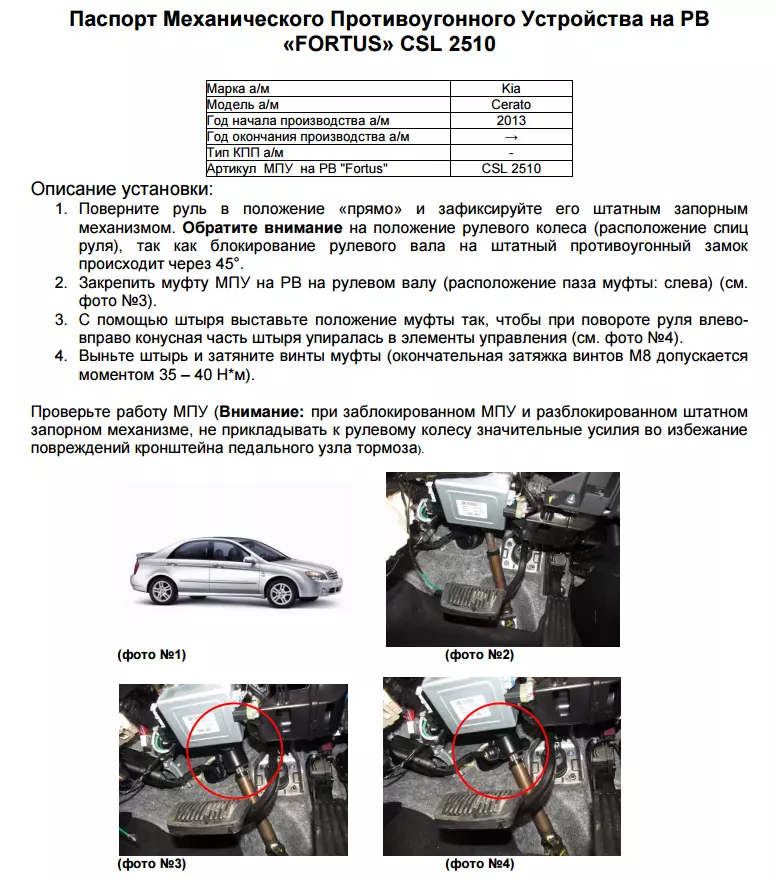 Замок рулевого вала «FORTUS» - механическое противоугонное устройство предназначенное для блокировки рулевого вала с целью предотвращения несанкционированного управления автомобилем.