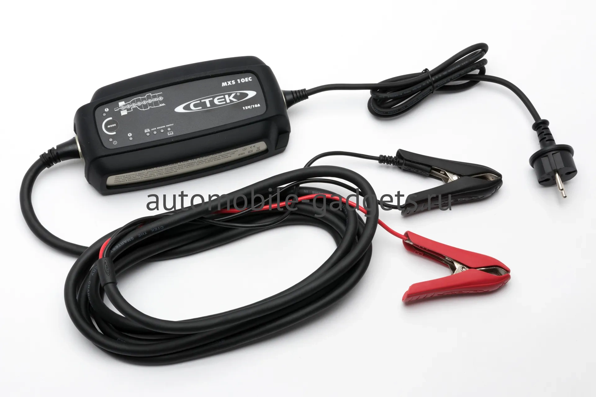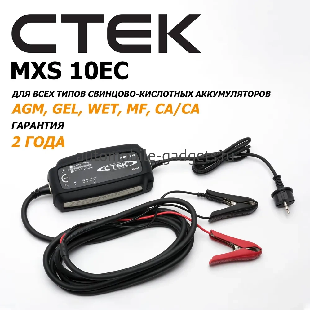 Ctek MXS 10EC отличается от модели MXS 10 удлиненным до 4 метров кабелем и защитным бампером в комплекте поставки.